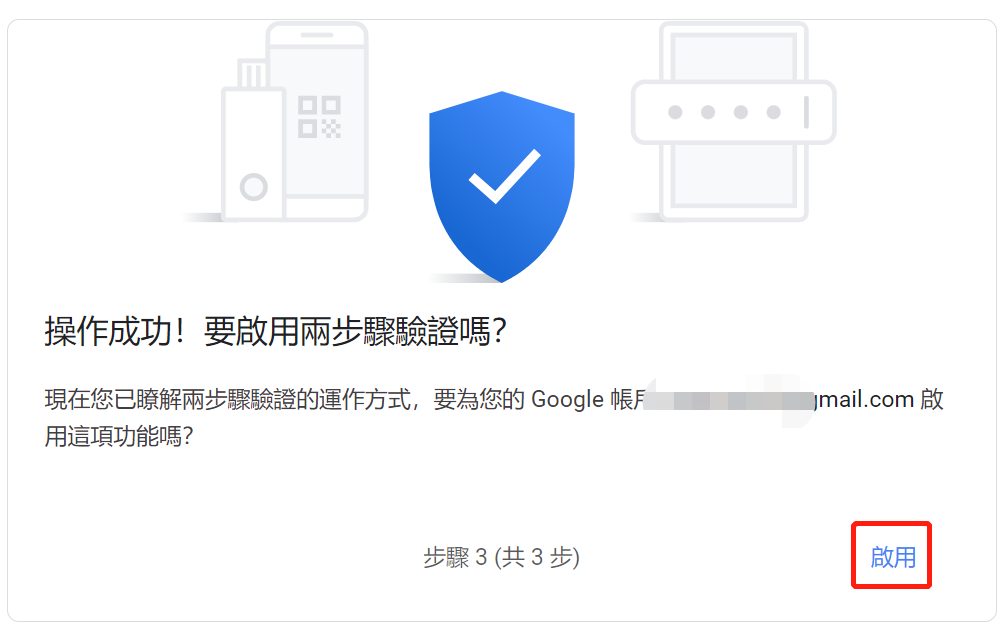 7. 恭喜以啟用兩步驟驗證,點選【啟用】